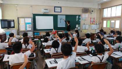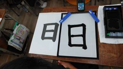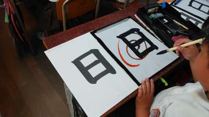 一学期最後の習字の時間の様子です。「日」を書きました。みんな真剣に取り組みました。