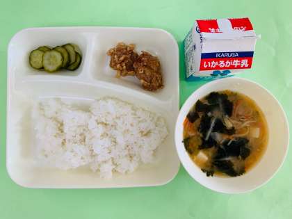 香味あげは、角切りの豚肉にしょうが汁と料理酒、こい口しょうゆで下味をつけた後、でんぷんをまぶして油で揚げています。鶏肉のたつたあげと同じ味つけで、子ども達に大人気のメニューです。