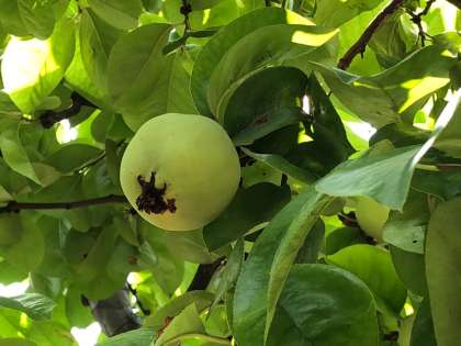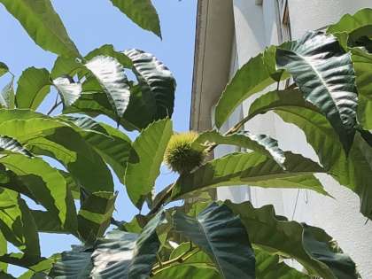 小学校の中庭の樹木にも、たくさんの実がなりだしています。