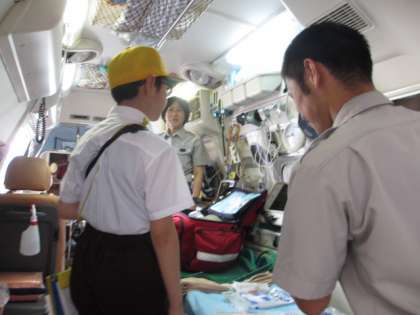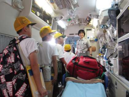 次は、救急車の中を見せてもらい、消防車の仕組みも教えてもらうことができました。