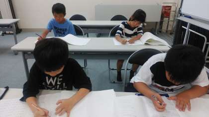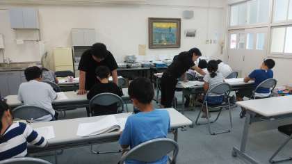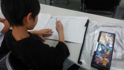 夏休みの宿題をする子、算数の復習プリントにチャレンジする子、自分のペースに合わせて課題に取り組んでいます。