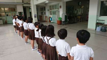 三年二組は今週あいさつ当番でした。ピロティーで5年生の運営委員の子ども達と一緒に大きな声であいさつをできました。あいさつが返ってくると嬉しそうな様子でした。