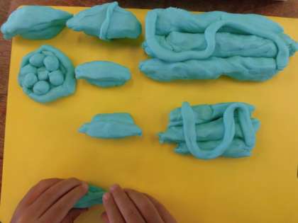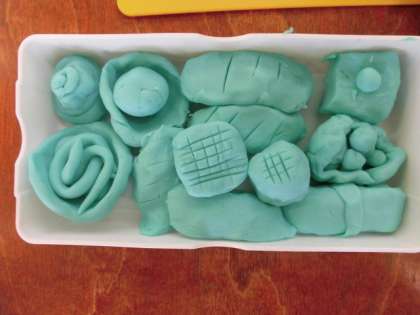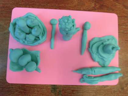 図画工作の時間に、ねんどでごちそうを作りました。
