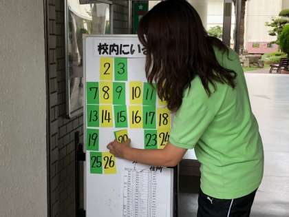 下の写真は、何班が下校済みかがわかるように、今回から表示しているものです。1学期の集団下校の時、保護者のお迎えと分団の下校が行き違ってしまったことがあり、その時の反省から、新たに取り入れたものです。