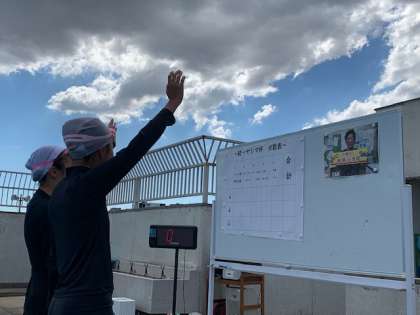 本日の晴天を願い掲げられたてるてる坊主のテル君も大喜び!残念ながら会長は授業のため開会式には間に合いませんでしたが、会長の写真にしっかりとした選手宣誓を行いスタートしました。