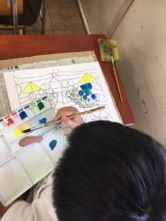 2・3時間目に、図工で「パウルクレー 女の館」を学習しました。