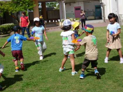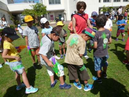 9月8日(日)本校校庭にて、菅原地域活動協議会 子ども育成部主催による「水合戦 菅原の陣」が開催されました。