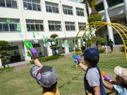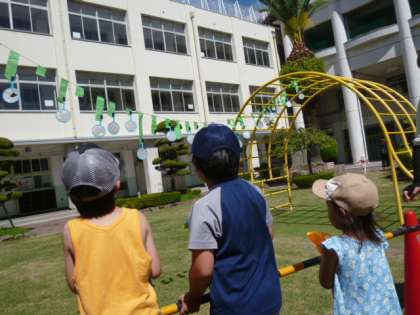子どもの様子を見ている大人たちも、「暑い暑い」とは言いながら、とっても楽しそう。