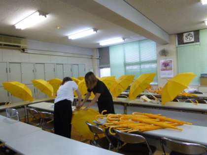 するとPTAの役員さんから、「いつからあるのかわからないけれど、倉庫の奥に、黄色い傘がたくさんありますよ。」というお知らせが。