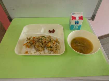 「他人丼」は牛肉とたまねぎなどの野菜を甘辛く煮て、卵でとじ、青ねぎで色どりよく仕上げた具をご飯にかけていただきます。この献立は「鶏卵(液卵)」の個別対応献立になります。