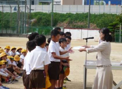 力強い掛け声に、全校児童から拍手が沸き起こりました。