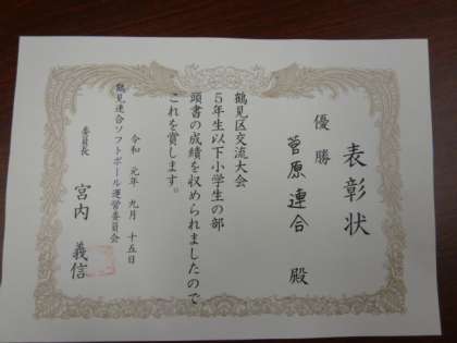毎週土曜日に本校で練習しているソフトボールチーム「菅原連合」が、鶴見区交流大会5年生以下小学生の部で、見事、優勝しました!!