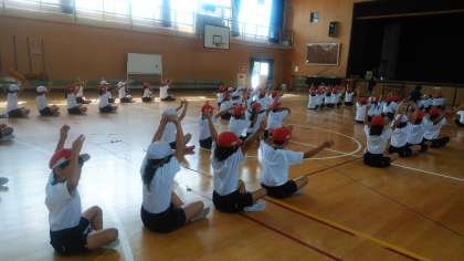 運動会のダンスの練習、毎日頑張っています!5人組になるのもスムーズに隊形移動しています。
