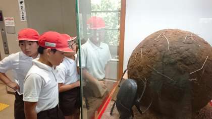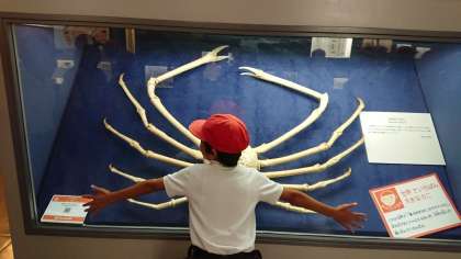 タカアシガニの大きさにびっくりしながらも自分の大きさと比べてみたり、フンコロガシの展示や動物の骨の展示など、どれも楽しそうに見ていました。博物館を出るときには、もっと見たいという声も多くあったので、お家でもまた行ってみてください。