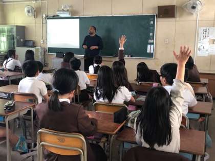 英語の時間の様子です。動画に合わせて歌ったり、ジェスチャーをつけたり、楽しく学習しました。ポインティングゲームはとても盛り上がっていました。