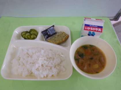 「豚汁」は、豚肉を主材に、さつまいも、ごぼうなどを使い、青みにみつばを使っています。甘みの出るさつまいもとたまねぎを使っているので、赤みその割合が多くなっています。