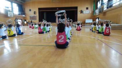 今週の運動会の練習の様子です。子ども達が練習用の手具を手作りで作りました。