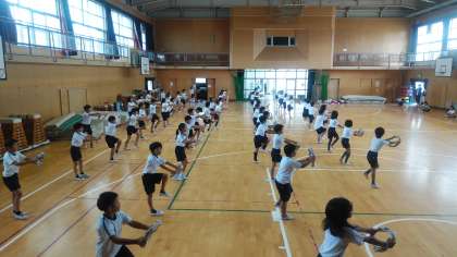続きです。輪を投げてキャッチの練習など、繰り返し頑張っていました。