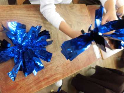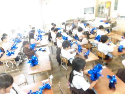 練習用とは違って、キラキラしているポンポンを見て「おぉー」という歓声が上がっていました。