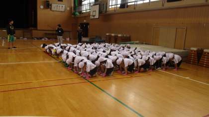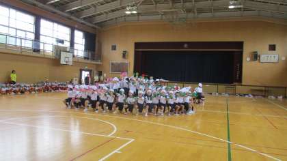今日は雨のため、講堂で1年生と見せ合いながら。ダンスの練習をしました。1年生も2年生もお互いのダンスを見て、よかったところやすごかったところなど伝えあいました。本番まであと少し。どの子も元気に頑張って踊っていました。