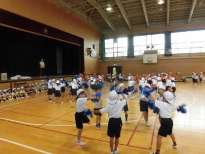 今日の運動会の練習は、2年生とダンスの見せ合いをしました。2年生に見てもらうことで、やる気満々で元気いっぱいに踊ることができていました。2年生のダンスを見た後は、感想を言って交流しました。本番でも、練習の成果を出し切って、楽しく笑顔で踊ってくれるのを期待しています。