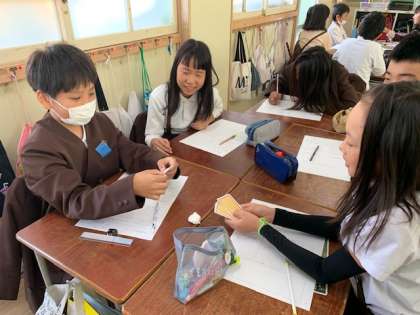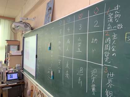 「こんなんどんな物語になるか自分でもわからんー!」「過去の設定なら、社会で習った歴史人物を登場させてもいいですか?」など、様々な知恵を搾りながら鋭意作成中です。さて、どんな物語を作るのか、先生も楽しみにしています。