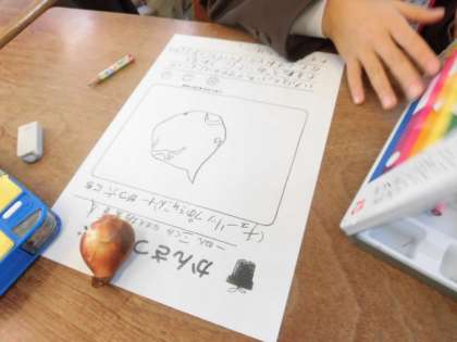 見るだけでなく、匂いを嗅いだり、触ったり、振ってみたり、色々なことをしながら球根を観察しました。