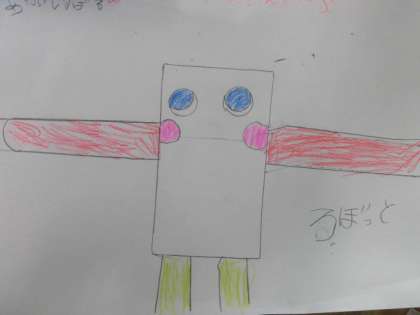 犬やうさぎ、ロボットなど箱の面を使って様々な絵を描きました。