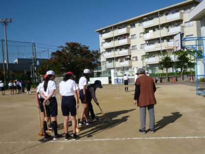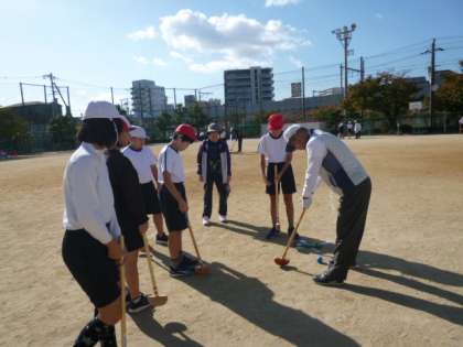 地域の方が、6年生にグラウンドゴルフを教えに来てくださいました。