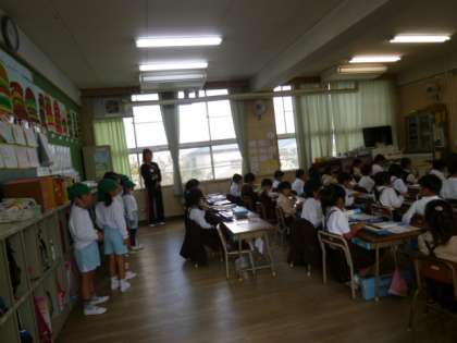 1年生は、国語、英語、音楽の学習をしていました。小さいお友だちが見ているとあって、1年生の子どもたちもお兄さんお姉さんらしく、とても張り切っていたようです。