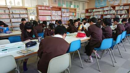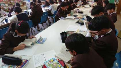 3分間読書の様子です。1冊を手に取り、3分間集中して読みました。その後、新しい本を取り、3分間集中して読むというのを繰り返しました。子どもたちは、とても集中して読んでいました。「時間が短い!」「もっと読みたい!」という声もありました。