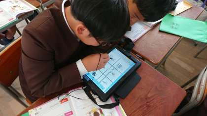 子どもたちは、タブレットを上手に使って楽しんで活動していました。