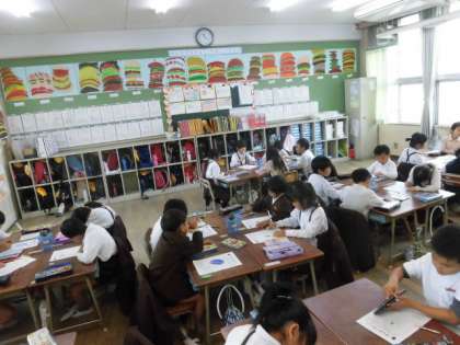 色やにおい、形などを観察し、観察カードに気付いたことを書きました。