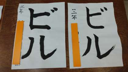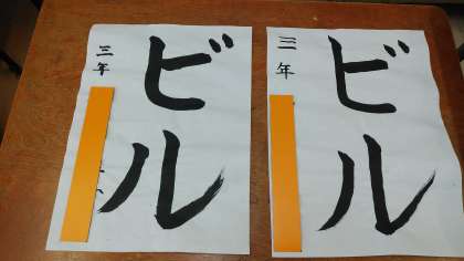 3年生の習字では、初めてカタカナを書きました。文字のバランスや中心を意識して、始筆・送筆・終筆にも気をつけながら丁寧に書くことができました。