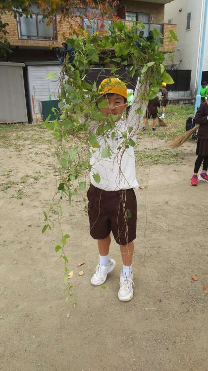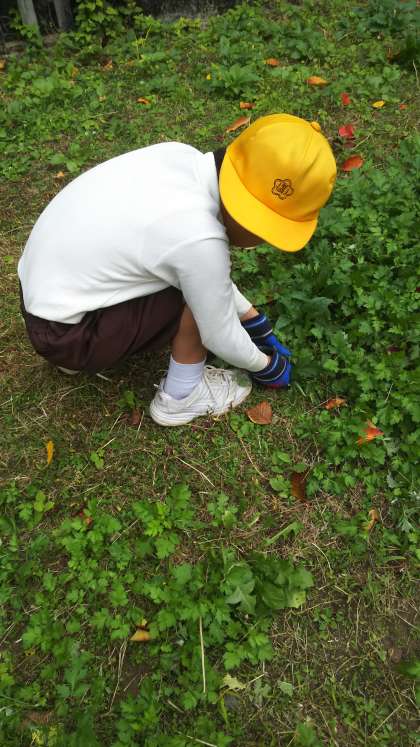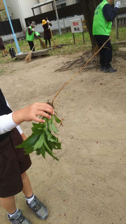 落ち葉だけでなく、雑草も抜いて公園をきれいにしました。