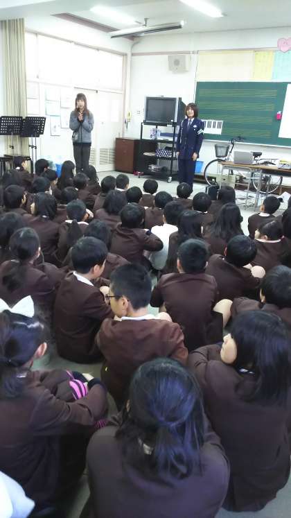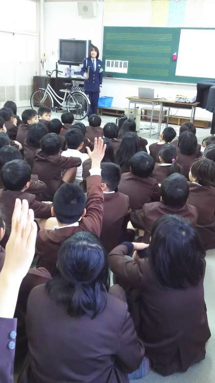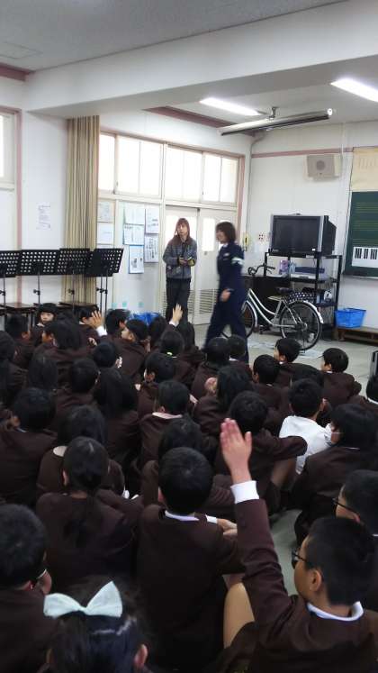 月曜日、東淀川警察の方に来ていただいて、交通安全教室をしていただいました。