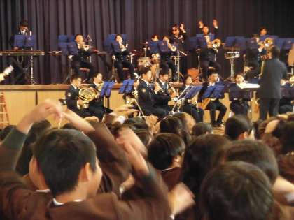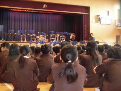 3時間目に音楽鑑賞会がありました。防犯教室でSNSの危険性について学んだあと、演奏を聞きました。「パプリカ」「そりすべり」など子どもたちがよく知っている曲も多く、演奏に合わせて歌ったり、手拍子をしたりと楽しんで聞いていました。最後には「ヤングマン」を振りをつけて聞きました。とっても盛り上がっていました。