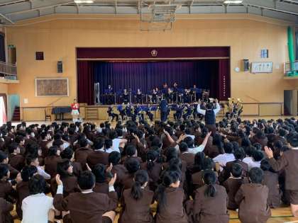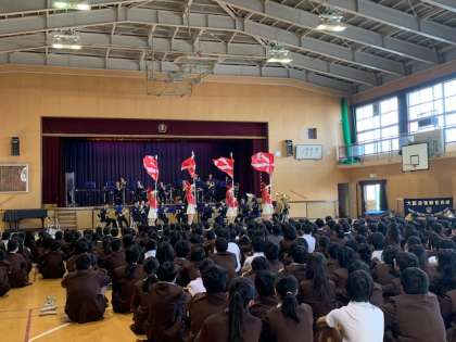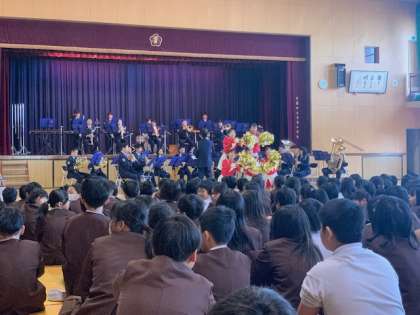 大阪府警音楽隊のみなさんの奏でる曲想と演技に酔いしれた40分間でした。低学年とちがい、6年生にもなるとリズムに合わせて体を動かすことに抵抗があるのかな…と思っていましたが、なんのその…手拍子に始まり、最後は立ち上がって踊っていました。