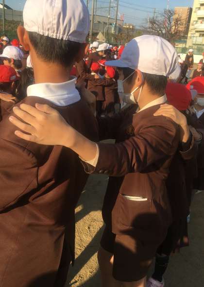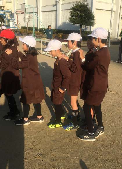 集会のじゃんけん列車。たくさんの子とじゃんけんをしてつながりました。