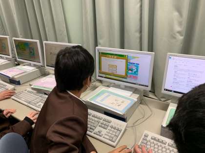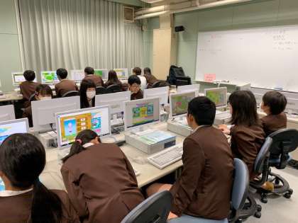 楽しみながら税金について学んでいます。動作環境さえ整っていれば、お家でもできますよ。あ…コラそこ!せっかくの説明をすぐに消さない!!