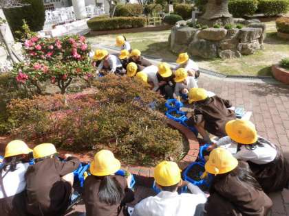 冬休みの間にチューリップを植えている鉢植えに雑草が生えていたので、綺麗にしました。
