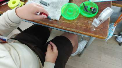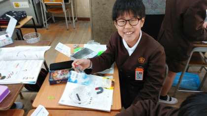 昨日に続いてですが、「じしゃくのふしぎ」の学習の様子です。下じきを間にはさんだり、水の中ではどうなるのか、実験をしました。
