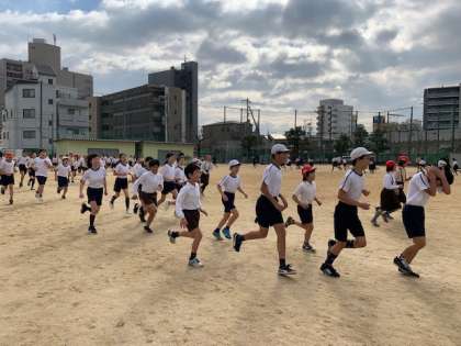 今週から業間かけあしが始まっています。合わせて、体育では持久走(1キロメートル走)をしています。