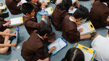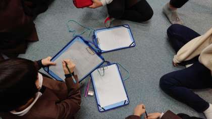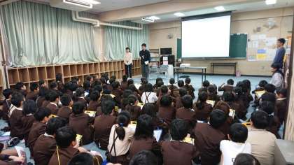 多目的室で防災についての学習をしました。実際に地震や津波が来た際に、どのように行動するのかを自分自身で考えていく必要があることを学び、自分ならどう行動するか真剣に考えていました。