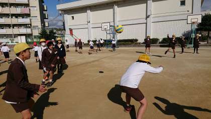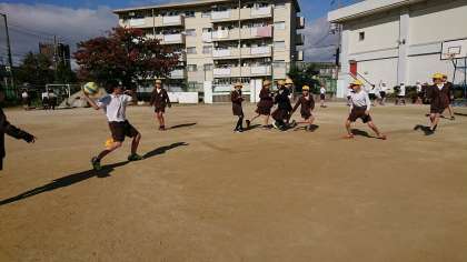 休み時間の様子です。20分休みには、みんな遊びをしています。ドッジボールやおにごっこをして、外で元気に遊んでいます。雨の日や他の休み時間には、教室でトランプやウノをして遊んでいます。