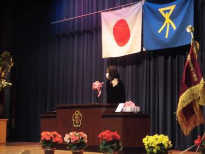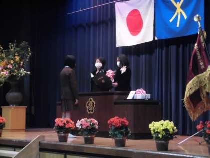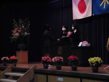 卒業生は一人ひとり担任から名前を呼ばれ、「はい!」と決意のこもった返事をしました。壇上での卒業証書授与は、学級代表1名のみに。練習もほとんどできませんでしたが、全員が立派な態度で式に臨んでいました。