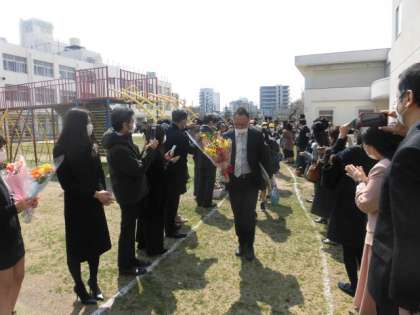 菅原小学校の卒業生121名全員が一人もかけることなく、うららかな春の日差しを浴び、誇らしげに胸を張って、小学校から巣立っていきました。