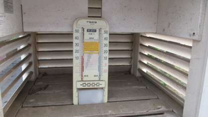 正かいは百葉箱(ひゃくようばこ)です。百葉箱は、中の温度計が空気の温度(気温)を正しくはかれるよう、地面の温度にえいきょうされない高さ(1.2m〜1.5m位)に温度計が来るように作られています。これから理科で使うことがあります。学校に来れるようになったら、どこにあるのか探してみてください。