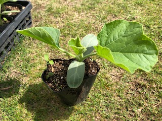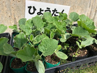 先日植えたヒョウタンが、本葉が2・3枚出ました。
