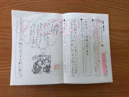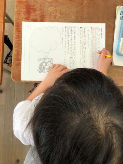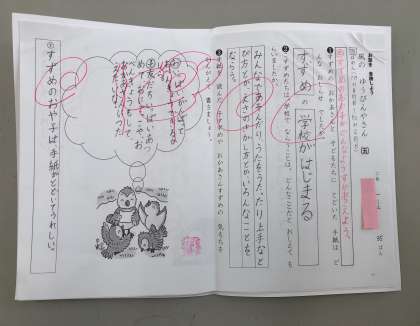 国語科では「風のゆうびんやさん」を学習しています。ワークシートを活用して登場人物の気持ちを考えています。